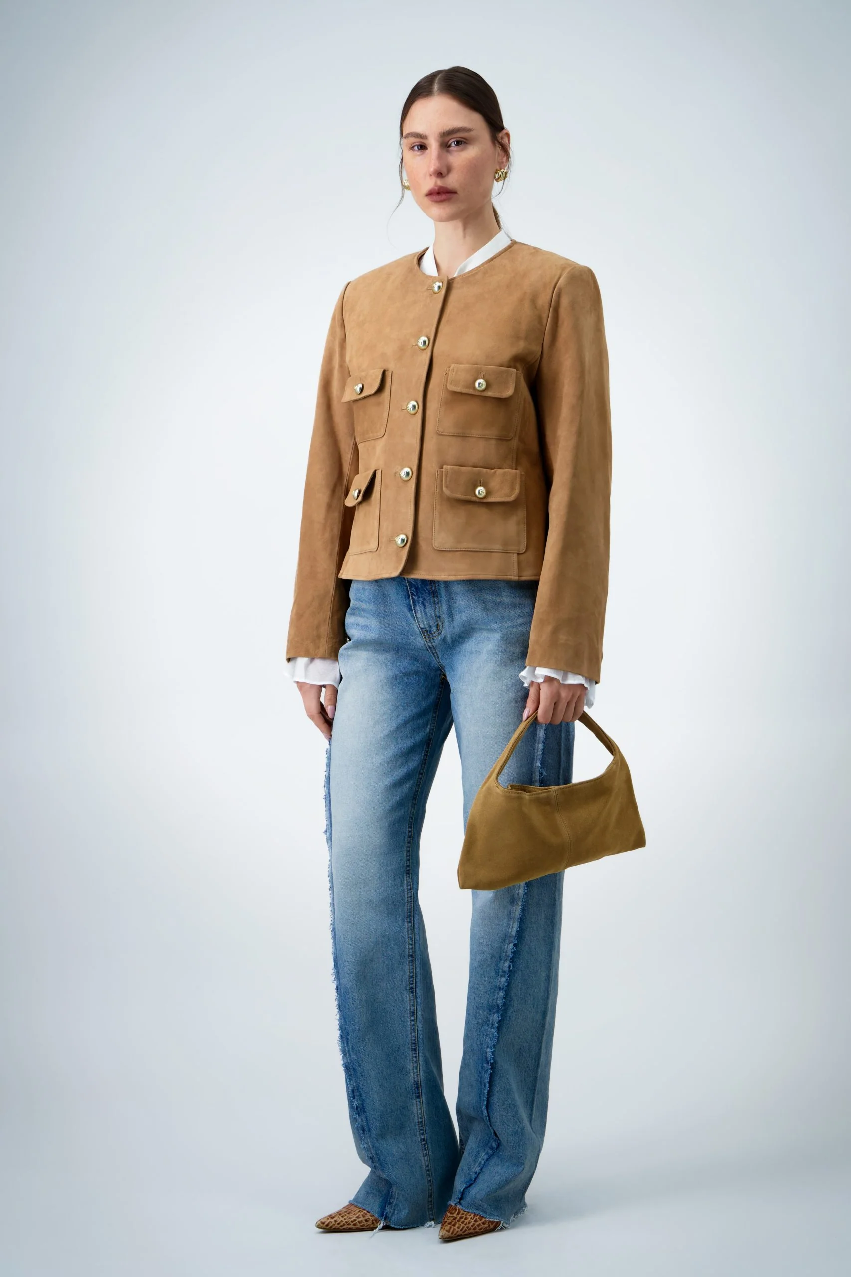 Handle Leather Bag - Beige
